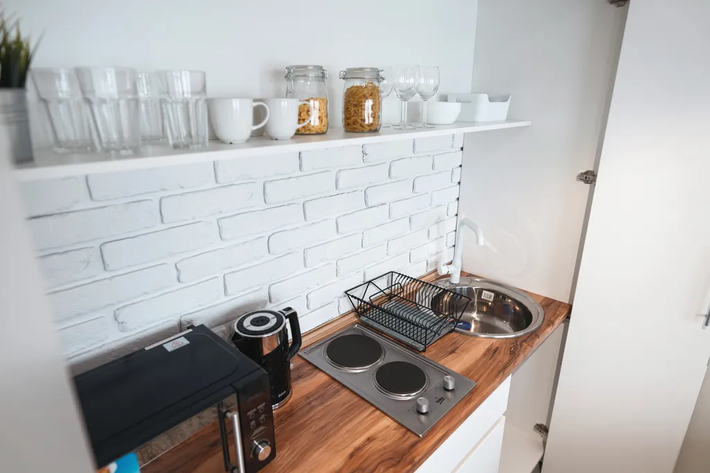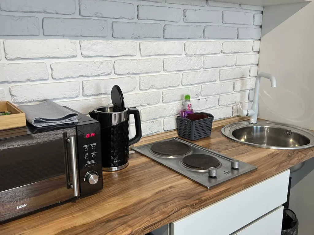 Электрочайник, холодильник, микроволновка, плита