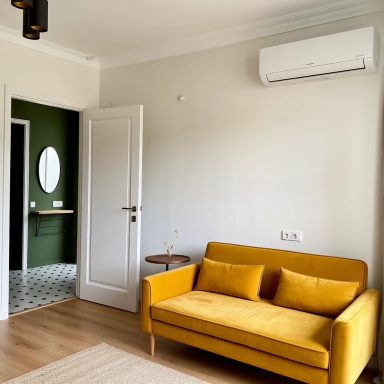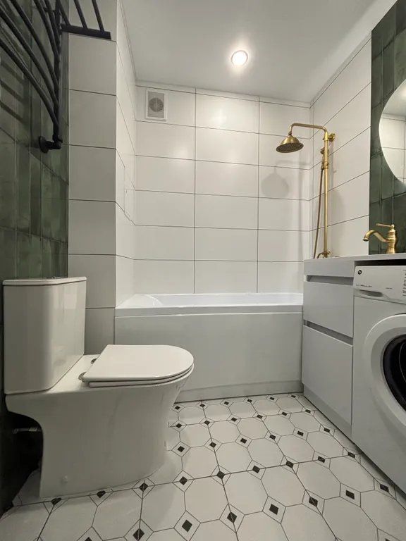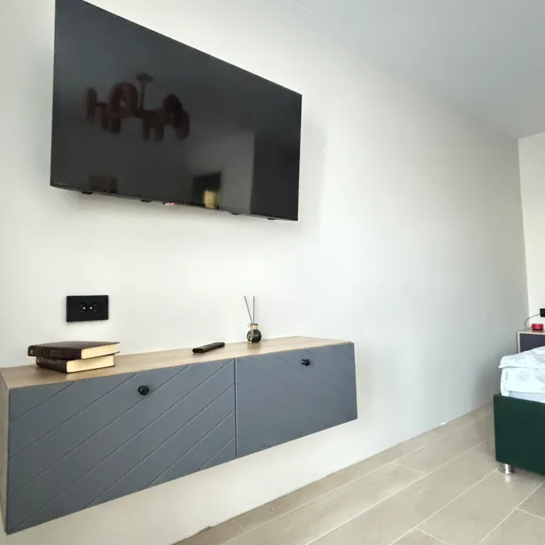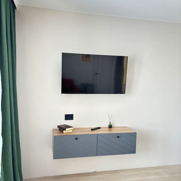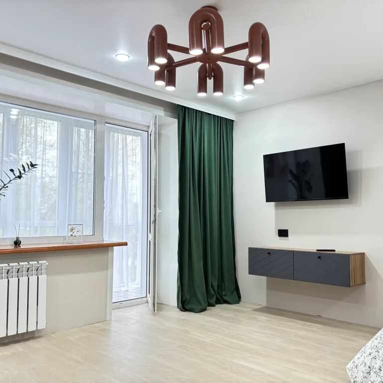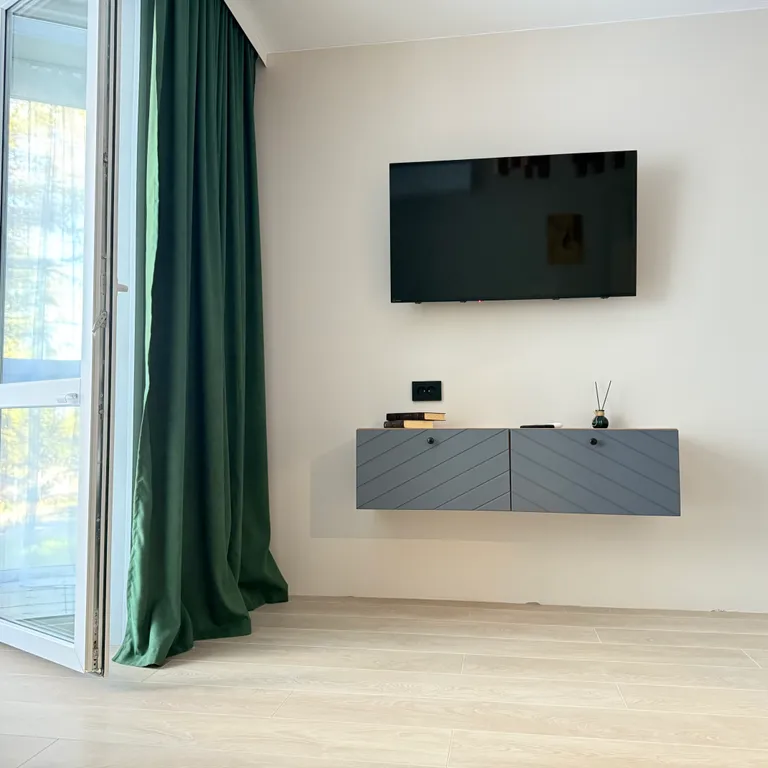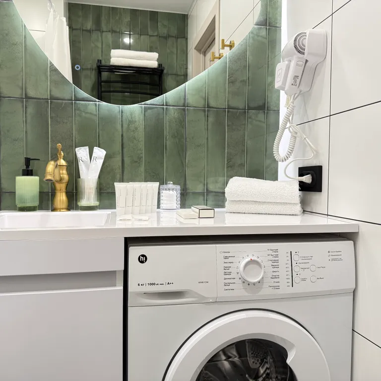 Всё необходимое для проживания: бытовая техника, посуда, фен, утюг, гладильная доска, стиральная машина, интернет с Wi-Fi, смарт-ТВ, кондиционер, колонка «Алиса».
