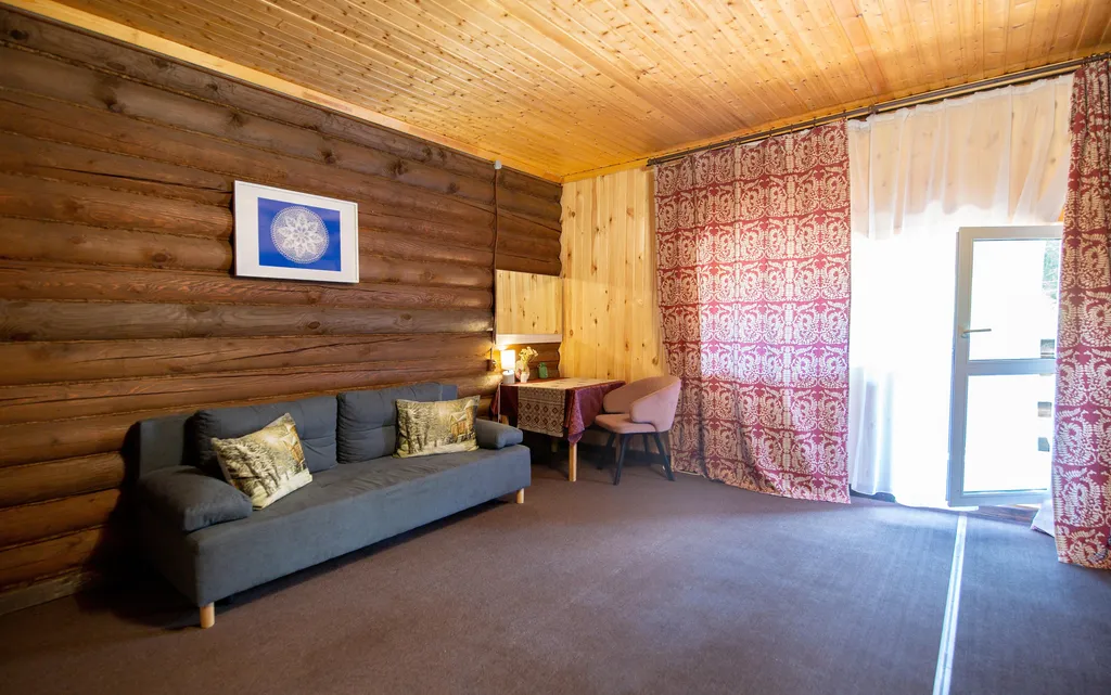 Идеальный вариант для семейного отдыха, включающий в себя комфортные кровати и просторную террасу с видом на лес. В номере есть все необходимое для комфортного пребывания с детьми: дополнительные кровати.