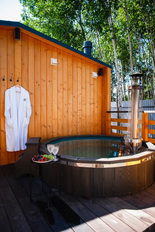Наша сауна оснащена печью с парогенератором, что позволяет сделать процесс наиболее комфортным и расслабляющим. На террасе вас ждет японская купель фурако (4000 рублей в сутки), которую мы с радостью растопим к вашему приезду.