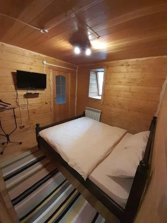 Спальня: большая двуспальная кровать, ТV-32 диагональ, вешалка-плечики.