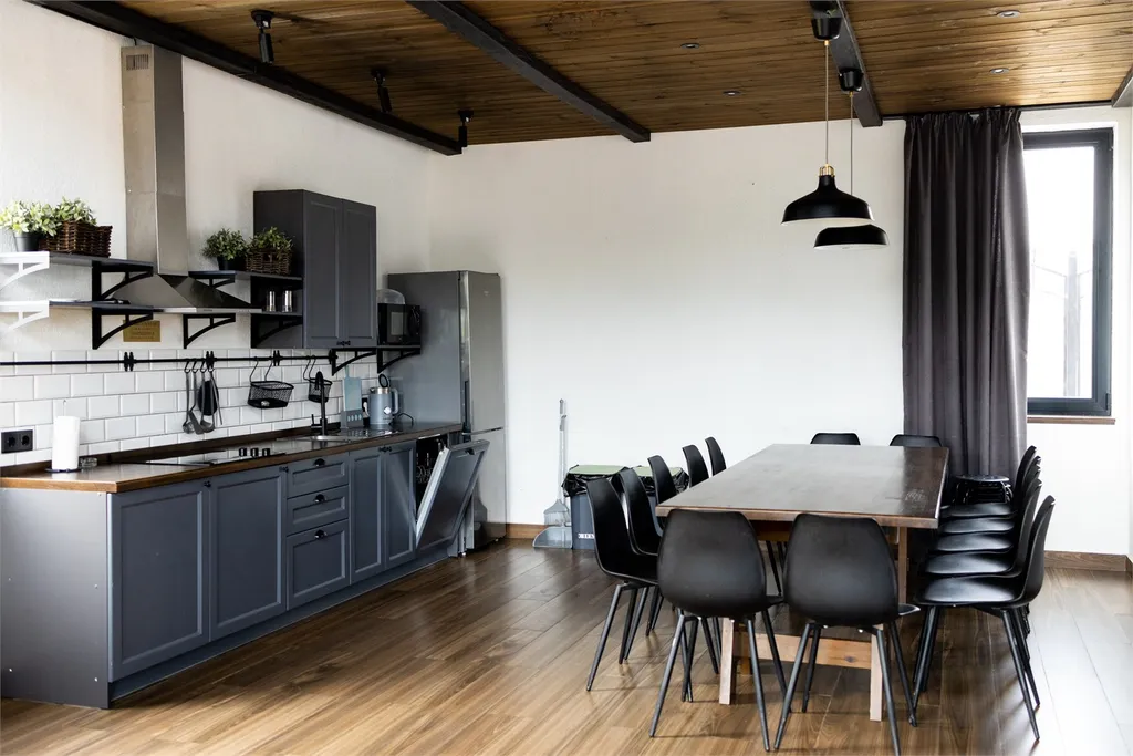 - Бытовая техника: холодильник, электрический чайник, микроволновая печь, электрическая плита, посудомоечная машина